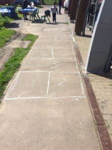 On the other side of the road on the dock fence in Newland Street, we had to use white chalk taken from our classroom at Drew Road School, Silvertown to draw a goal of roughly the same size. We couldn’t paint it as the dock fence was black.