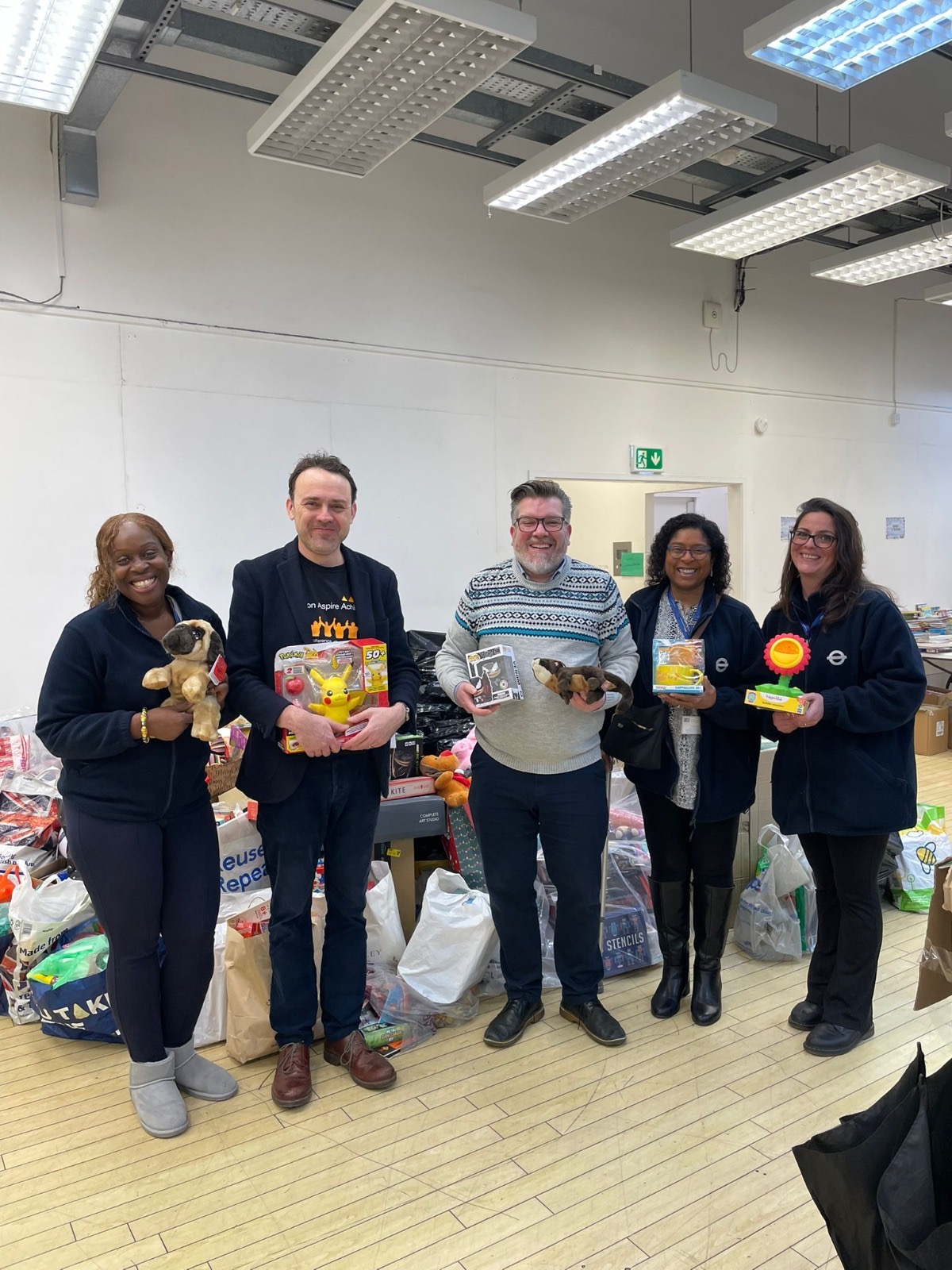 MP James Asser also visit the centre in Beckton with staff from the LRT Lost Property office in West Ham where they helped unpack the three cages of new toys they had donated the day earlier. (see picture below).