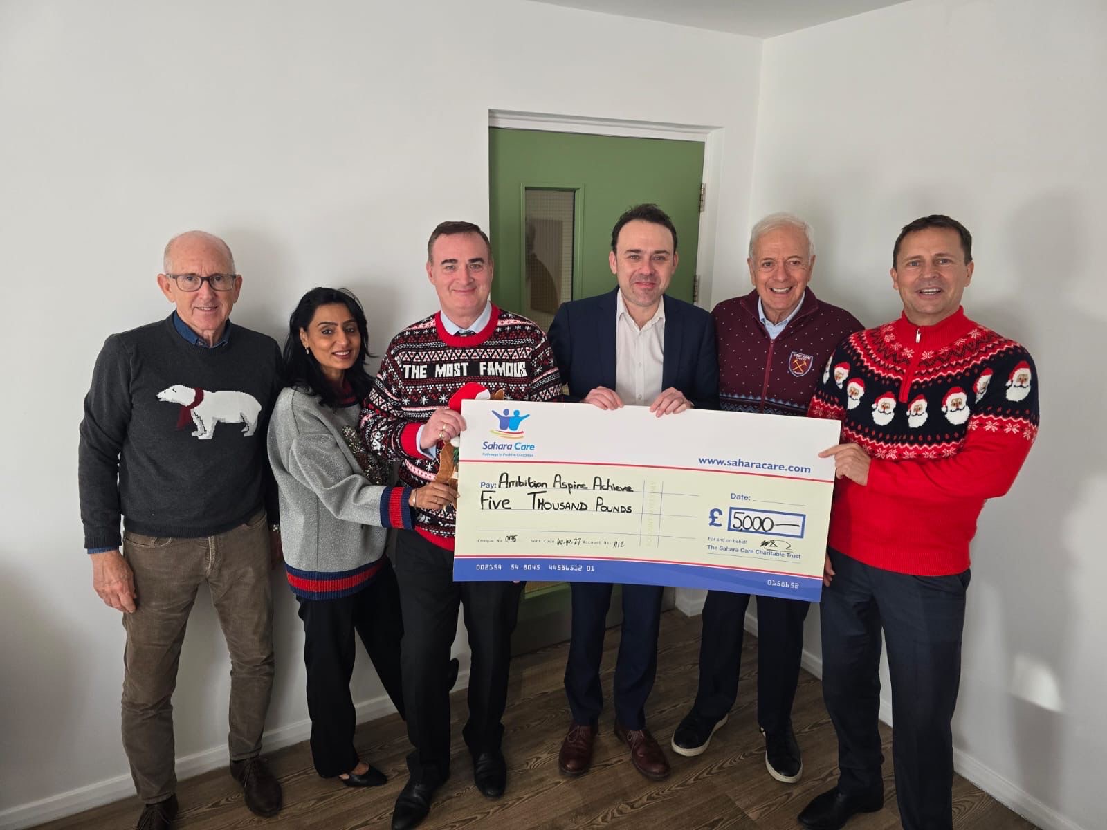 A major boost came from Sahara Care, the home care provider delivering residential care for people with learning and physical difficulties. Sharon Kaur, managing director, chairman Terry Brown and board members presented a cheque for £5,000 to AAA’s Chief Executive Jonny Boux. (pictured below)